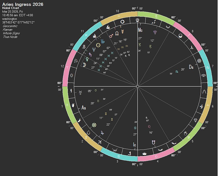 Read my first post for this Aries Ingress here. My next post will be reading the Aries Ingress from the Moon, for a more personal look at how this ingress will affect us individually.